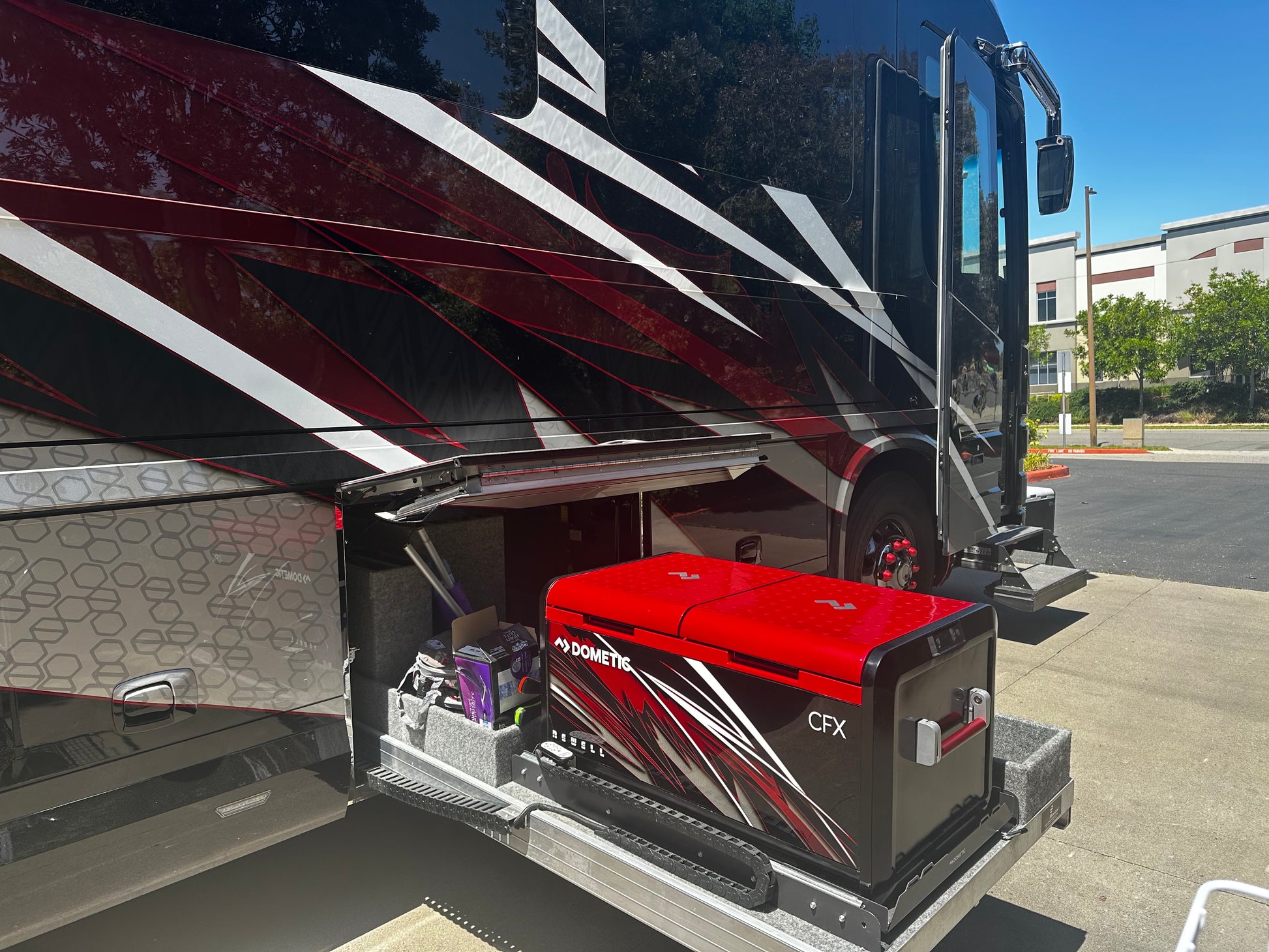 A custom designed and painted Dometic Cooler (cooler provided by customer) based off of your own Newell Coach. Set your bay cooler apart with a custom paint job to match your coach!